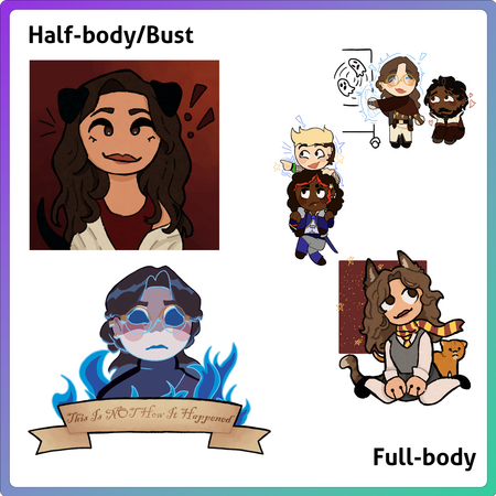 Below is a breakdown of my pricing and work examples.COMMISSION STATUS: Closed! Reopening January 2026All of these pricings are estimates, and actual projects may vary in difficulty. If there is a service you are interested in not listed, please contact me to work out a rate!